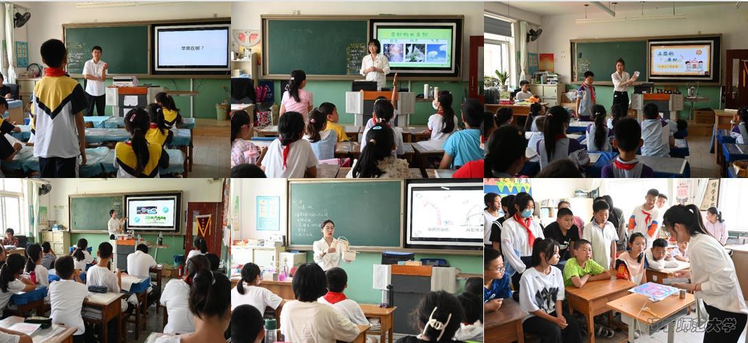 在活动筹备阶段,服务团成员精心准备授课内容,制作实验教具,反复演练确保授课质量。在课堂上面对孩子们时,服务团成员们用生活中常见的物品演示复杂的科学现象,用轻松活泼的语言解释晦涩的物理原理,生动的演示、有趣的互动时不时引发孩子们的阵阵惊叹,课堂上充满了欢乐的氛围。