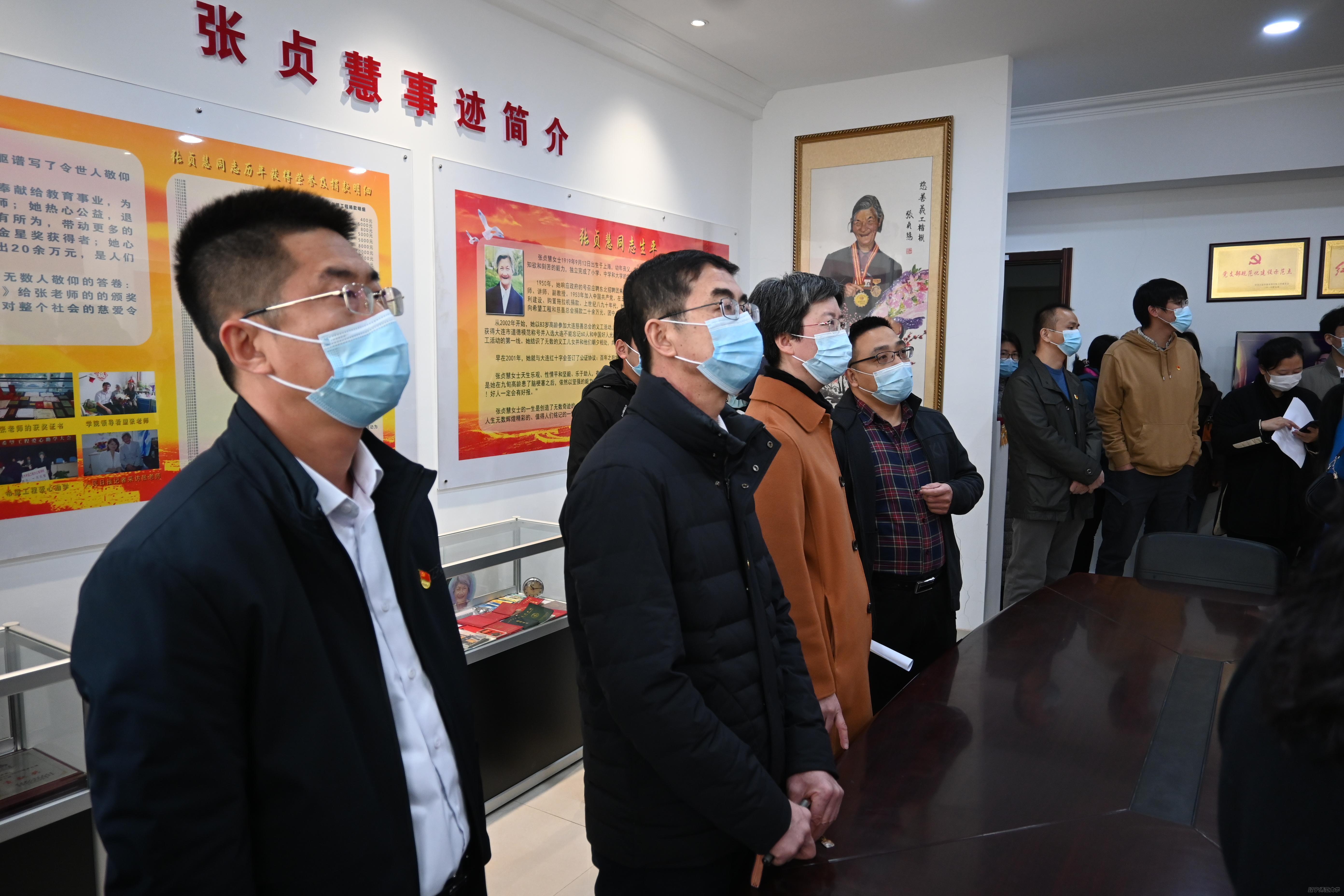 张贞慧是辽宁师范大学退休副教授,也是大连市慈善总会年龄最大的义工。曾先后荣获“中国好人”、2009年度辽宁省道德模范、感动辽宁20佳慈善人物、辽宁省老有所为贡献之星、大连市慈善总会“义务工作终身成就金星奖”、感动大连十大杰出人物、大连慈善家、大连市希望工程贡献奖、西岗区十大杰出女性等荣誉称号。活动室内满满的陈列着张贞慧老人的各项荣誉证书、捐款证明、事迹报道等,大家怀着无比崇敬的心情,认真观看了2017大连市时代楷模颁奖盛典上,对张贞慧老人生平事迹的介绍。在她96岁的生命中,有60多年都在做着一件事,那就是慈善!她捐款大方,但对自己吝啬至极,还在83岁高龄时当上义工,始终坚持为社会多做贡献。可以说她的一生都是在奉献中度过,即便她离开我们已经有6个年头了,可她的精神仍然感动着无数人,更有许多人以她为榜样,传承发扬着慈善的事业,“上善若水、大爱无言”八个字是对张贞慧老人一生的高度概括。参观结束后大家在活动室内合影留念。