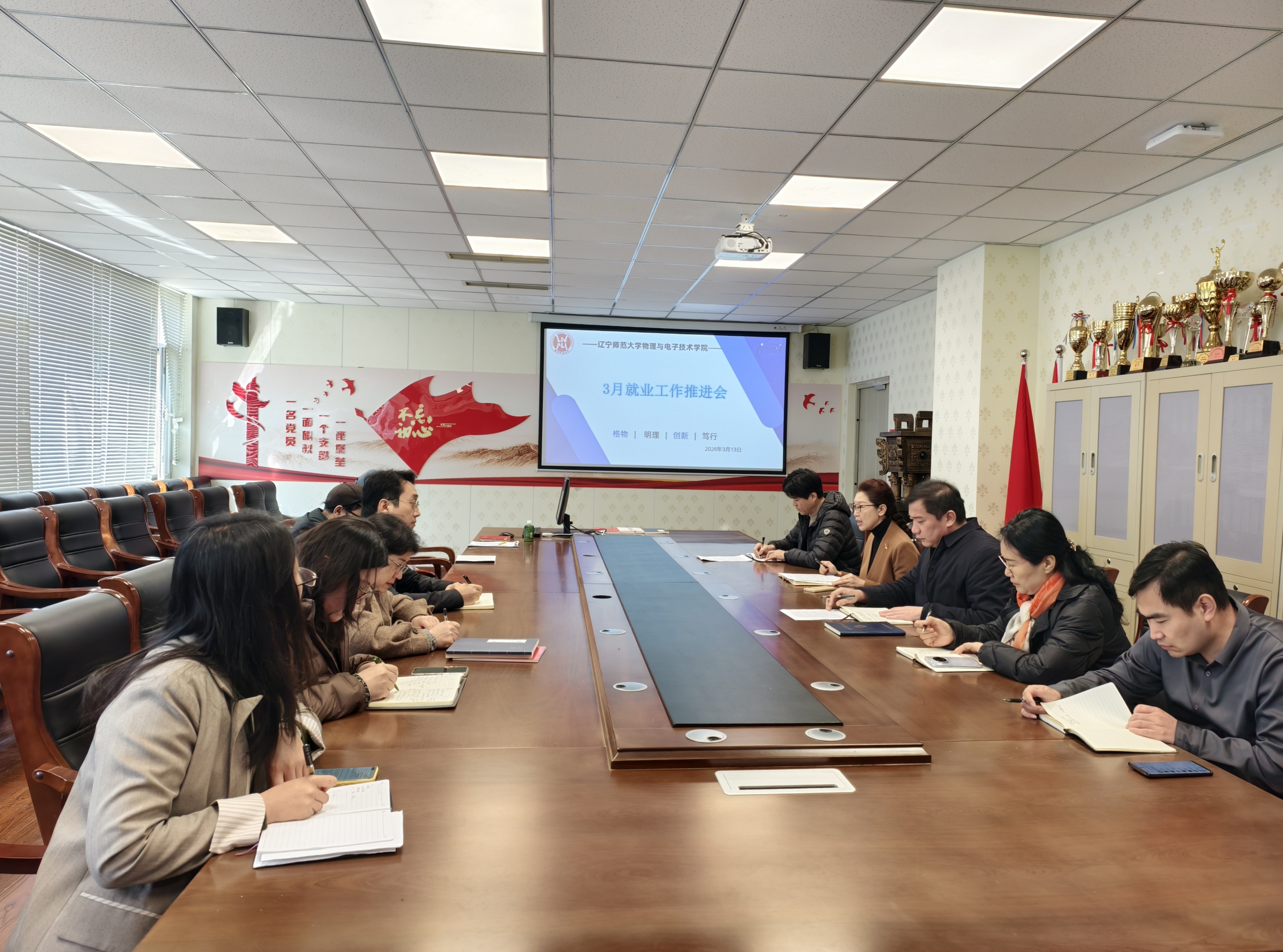 会上,李凝书记首先传达了学校3月5日就业工作推进会精神。研究生辅导员孙凯丽和本科生辅导员任美懿分别通报了2026届毕业生考研与就业最新数据,分析了当前毕业生就业去向分布、未就业学生具体情况及考研复试、调剂进展情况等。党委副书记雷鸣对本科就业工作的重点难点进行了梳理,提出下一步要强化分类指导,针对考研复试学生开展调剂指导和就业兜底帮扶;要继续深化访企拓岗,对接优质用人资源,拓展教育类、企业类就业岗位;辅导员和专业教师要持续合力加强学生和家长的就业观教育,引导他们认清形势、合理确定择业目标。专业负责人及教研室主任分别结合自身工作实际,围绕就业工作开展交流,提出具体工作思路与对策。